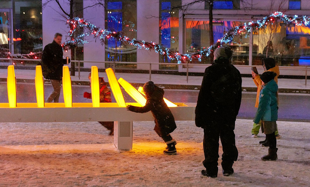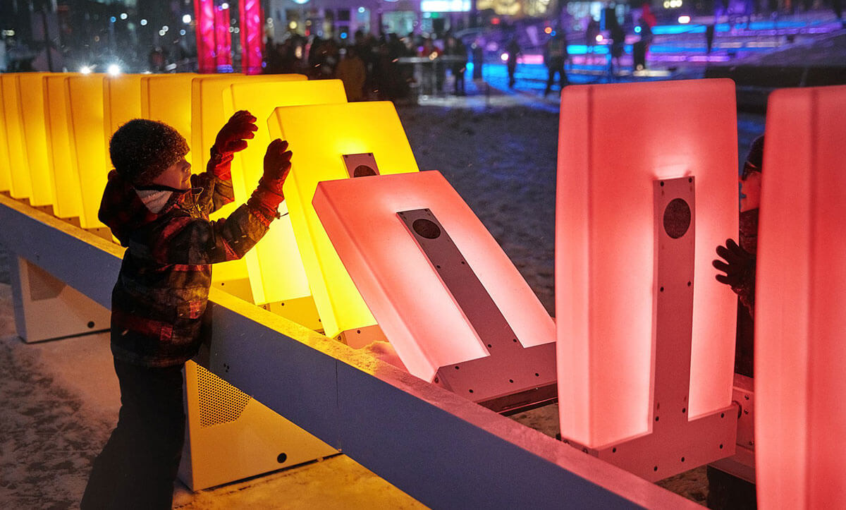 Quoi de mieux qu’une installation ludique lumineuse pour agrémenter les longues nuits d’hiver montréalaises.